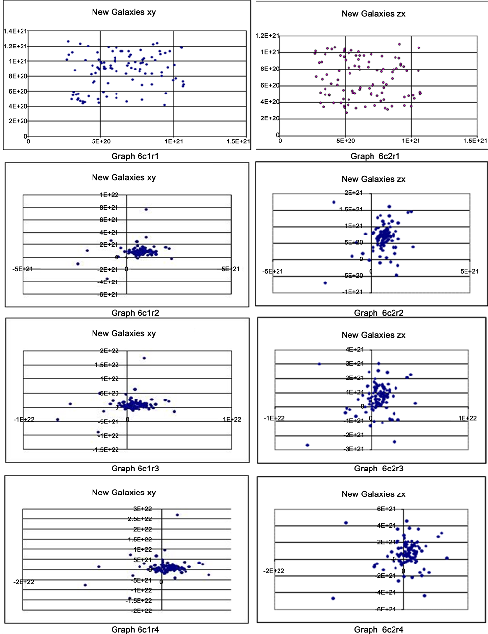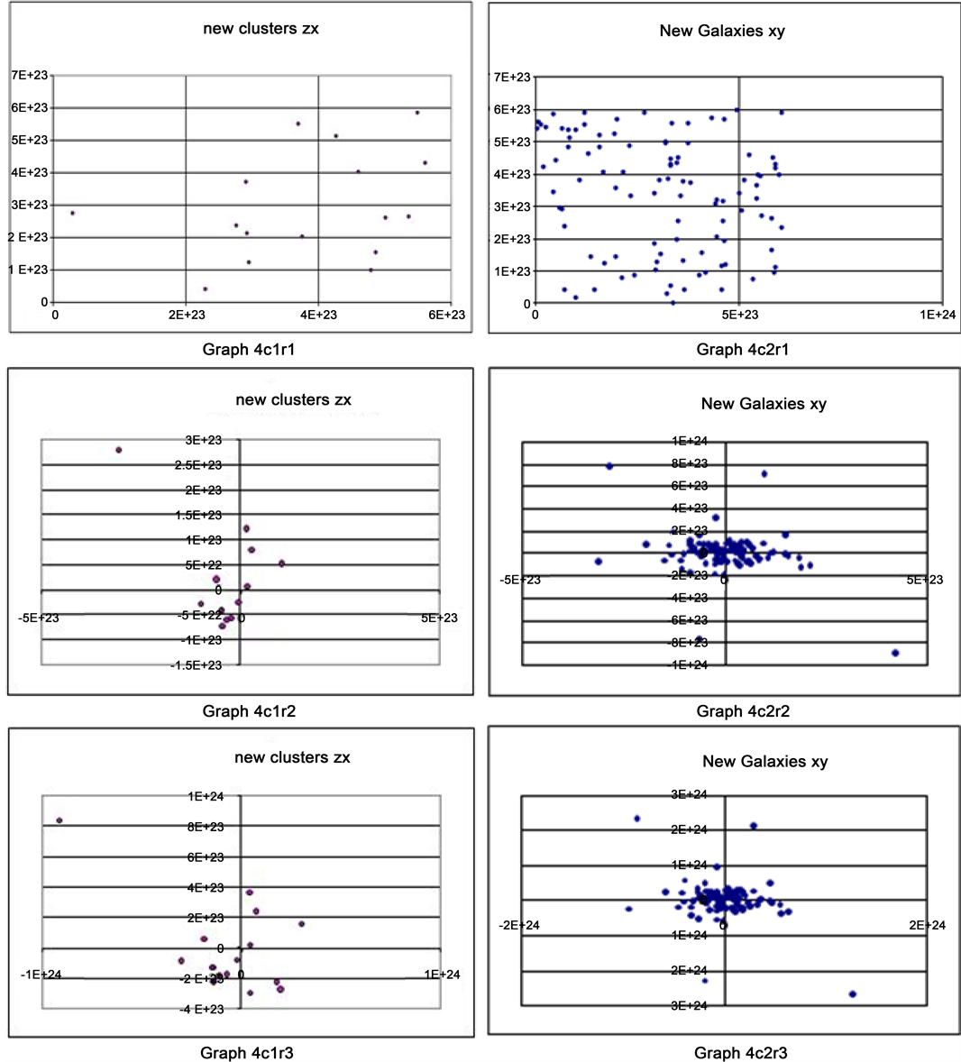 Here in this fourth example (in this new simulation), in the above set of figures, the first column group of Graphs were with the name New Galaxies