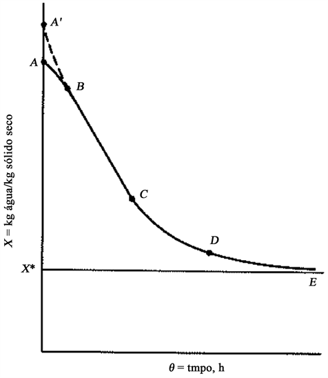 where W is the mass of dry solids; A is the drying area; X1 and X2 are the initial and final moisture (dry basis); NC is the drying rate in the constant period.