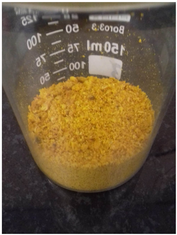 It was also observed, qualitatively, that with the high temperature used did not occur the loss of color and odor and that is characteristic of pequi in natura. The milling step was performed using a knife mill (see Figure 6). Soon after the milling stage, the granulometric analysis stage was carried out using the Tyler series of sieves. To establish a powder cor pattern a scale of surface coatings was used and RAL 1032 (Trojan Powder Coating-New York) closely approached the color of pequi powder.