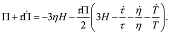 For the full causal non-equilibrium thermodynamics the causal evolution equation for bulk viscosity is given by [40]