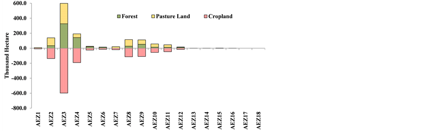 Table 5. Changes in land cover due to improvement in WUE (1000 hectares).