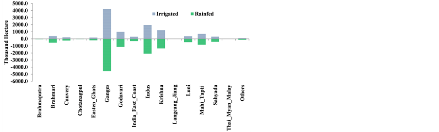 Table 4. Changes in irrigated and rainfed harvested areas due to improvement in WUE (1000 hectares).