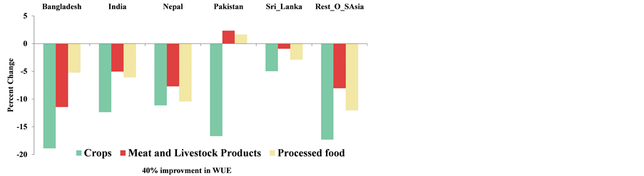 Figure 4. Impacts of improvement in water use efficiency on prices of food items in South Asia.