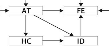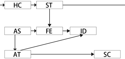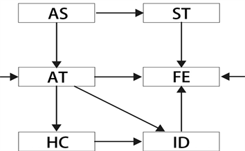 In the Technique of Augmented Reality learning, there are many related games engines and plug-in software that are constantly updated, and it has become easier to create related digital content. Therefore, the art design style has become an important indicator of content presentation. In the focus group Mind Map, Art Style (AS) influences Final Effects (FE) and Interactive Design (ID), and meanwhile drives Animation Technique (AT) learning, which is a relatively linear single learning in learning mode and shown as Figure 6. The seniors are also driven by Art Style in their mind performance. They further understand the interrelationships between the individual affinity studies and a reciprocal learning mode is formed and shown as Figure 7.