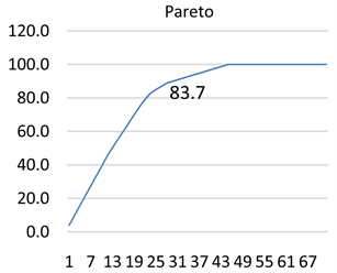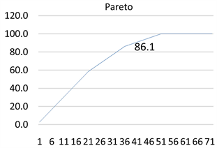 reached to the top with a value of 50.3% (shown as Figure 2(a)) and its cumulative percentage agreement is 83.7% (shown as Figure 2(b)). Meanwhile, the frequency is 3, so only the relationship of frequency ≥ 3 is taken into Interrelationship Drawing (IRD).