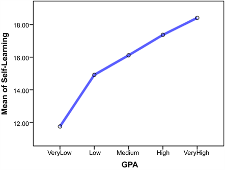 Figure 6. Relationship between GPA and self-learning as a component of students’ attitude toward STEM-PBL.
