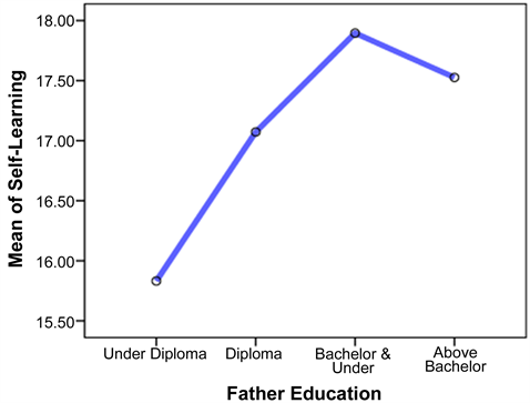 Figure 7. Relationship between fathers’ education and self-learning as a component of students’ attitude toward STEM-PBL.