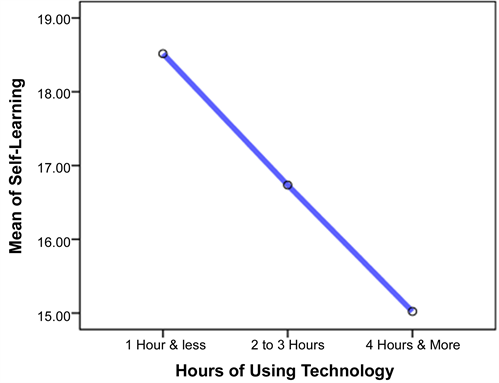 Figure 8. Relationship between use of technology and self-learning as a component of students’ attitude toward STEM-PBL.