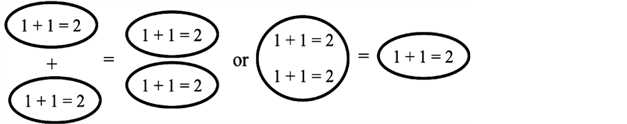 The Infinite and knowledge: Figure 1 above illustrates what happens when somebody who only knows 1 + 1 = 2 is told/ taught that 2 + 1 = 3. What happens when somebody who already knows that 1 + 1 = 2 is told that 1 + 1 = 2. This is illustrated in Figure 4.