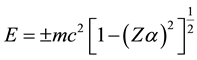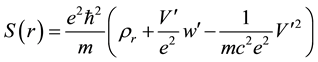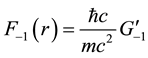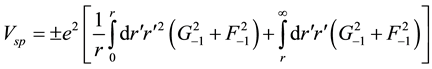 for the interaction of particles with the same (+) or opposite (?) charges and where the electronic density is that inferred from the MEOM using the large and small components of the MEOM wave function for a bare electron