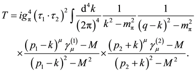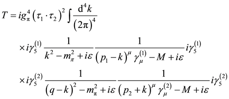Now, the evaluation of the two pion exchange Feynman diagrams is done in a straight forward way [18] [19] , and we find the corresponding T-matrix as