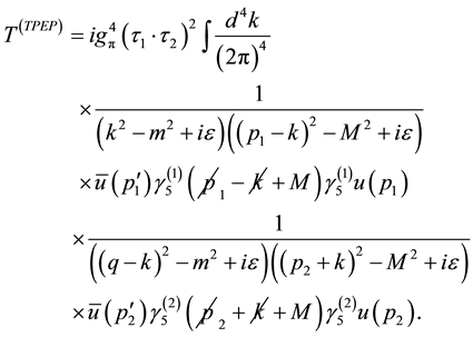 Here, we see that the T-matrix of the one pion exchange process is written as