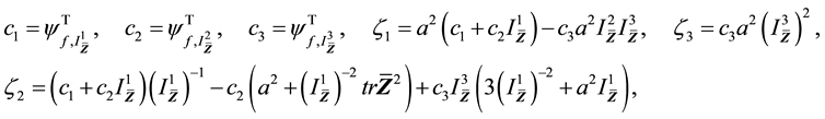 Substituting (8) and (9) into (10) with the assumption of material isotropy and chain rule of differentiation, the corresponding restrictions on forms such as (8) have been defined elsewhere [23] [24] . They are expressions for