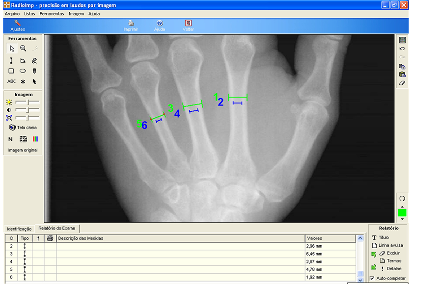 Figure 4. Measurement of Metacarpal Index (MCI) using the software program Radioimp (Radio Memory, Belo Horizonte, Brazil).