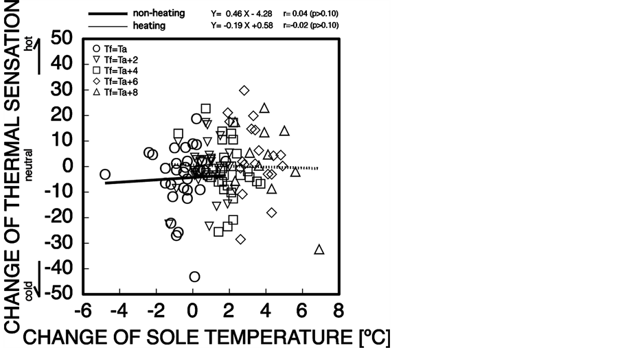 Figure 14. Relationship between change of sole-of-foot temperature and change of whole-body thermal sensation.