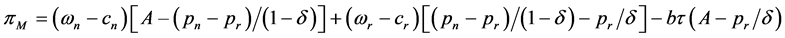 Plug Equations (1) and (2) into profit function, we can get the profit function of the manufacturer, the retailer, the recycler.