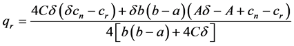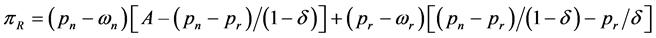 According to consumers’ different willingness to pay and the psychological preference for new products and remanufactured products, we can segment market. Assume that the retail price of new products pn change within [0, A], the retail price of remanufactured products pr change within [0, pn], so consumer’s net utility obtained from purchasing a new product and a remanufactured product can be represented as UN = w − pn, UR = δw − pr respectively. There are two extreme cases to consider.