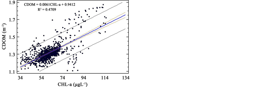 Figure 7. Relationship between CDOM concentration and CHLa concentration.
