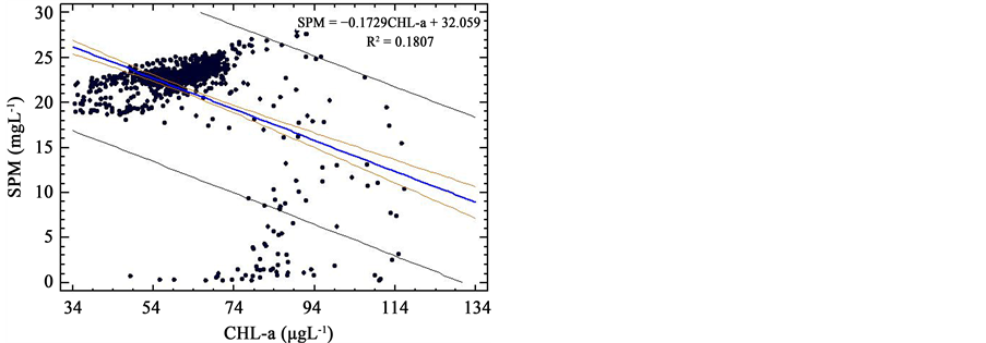 Figure 8. Relationship between SPM concentration and CHLa concentration.
