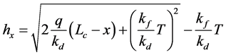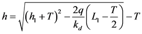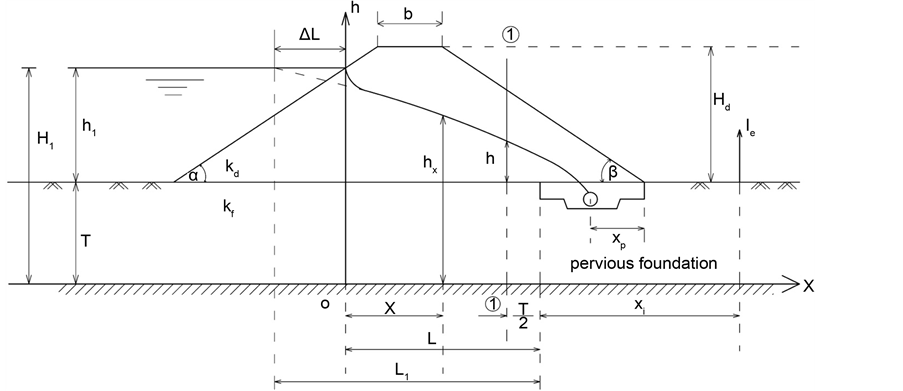Considering the existence of tail water, the seepage discharge per unit width through the earth dam section was calculated, using Nedrigy solution [5] , from the equations: