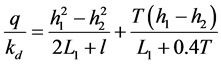 The seepage discharge per unit width through a homogeneous earth dam was calculated by Grishin solution [2] as follows: