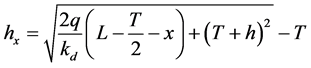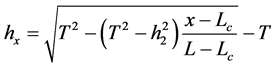 The locus of the free surface between the vertical section (1-1) and the pipe drainage was determined from the equation: