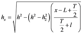 The locus of the free surface from the vertical section (o-h) and point (C) was determined from the equation: