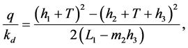The seepage discharge per unit width through the earth dam section was calculated, by Grishin solution [2] , as follows: