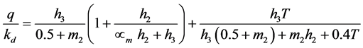 The purpose of the present research is to analyze and evaluate the hydraulic performance of the considered toe drainage systems using the analytical solutions previously developed by Grishin [2] , and Nedrigy [3] [4] [5] . The hydraulic performance of toe drainage systems was evaluated considering the case of earth dam without control measures which considered the reference case to be used as a base of comparison between toe drainage systems. The case of dry downstream condition was considered in calculation where gives the maximum effective head (H), hence, H = h1. Results were presented in a dimensionless form where the seepage discharge is expressed as (q/kdH), and the height of seepage surface length is expressed as (h3/H).
