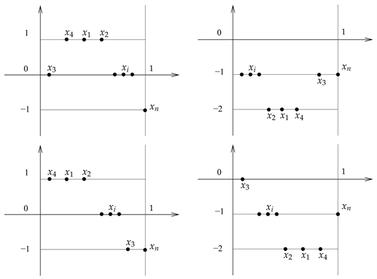 In each case can be extended in ways, giving the possible relative positions of the (see Figure 7, for the case of ). So, there are RH-configurations . Which concludes the proof of (2.8).