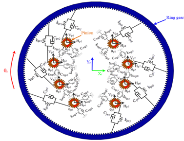 At present, scholars have done a lot of research on the dynamic characteristics of the key parts of TBM. Zhou et al. [2] proposed and established an equivalent coupling model through the secondary development of the finite element software ABAQUS, and carried out the corresponding dynamic analysis. Huoet al. [3] established a multi-degree-of-freedom coupling dynamic model of TBM, and studied the dynamic response of cutterhead under impact load. Li et al. [4] established a general nonlinear time-varying (NLTV) dynamic model and a linear time-varying (LTV) dynamic model for the shield tunneling machine drive system, and the effects of physical parameters under various conditions of dynamic model are analyzed. Zhang, Li et al. [5] [6] established a dynamic model of shield machine under complex geological conditions, calculated the dynamic response of the cutterhead slewing system, and explored the influence of key parameters. Cooley and Parker [7] studied the effect of the speed of the planetary carrier on the natural frequency of the system. Han [8] introduced a nonlinear spring element to simulate the interaction between the cutterhead and the rock, and established a finite element model to simulate the dynamic process of the tunneling process.