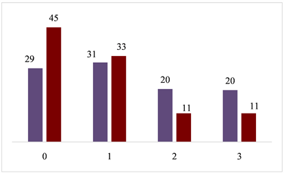 From the 233 participants, 22 knew the original CRT questionnaire [7] and thus were redirected to the alternative one [14] . Questions missed were considered incorrect for those who proceeded to the subsequent questionnaires. Figure 1 shows the overall performance on the CRT, while Figure 2 details performance related to the prior choice. Those who picked Laptop B as a prior choice scored less on the CRT. We then expected those participants to make more automatic choices thereafter, by using their System 1.